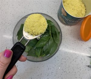 Some of the ingredients do need a little prep, however. For example, you’ll want to ensure that your chickpeas are drained and rinsed, your lemon is zested and juiced, and your basil leaves are plucked. If you have a whole bunch, just take the leaves, leaving the stems out – they can add a slightly bitter taste. Not to mention, they are a little tougher and won’t blend down as well.