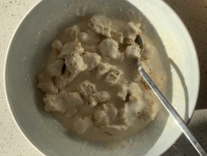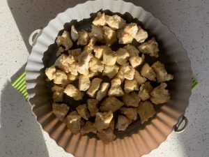 Sesame oil – oh how I love sesame oil. It adds that beautifully nutty taste and aroma. When frying the tofu, if the batter gets a little dry, you can add some extra oil here to get it golden and crispy.